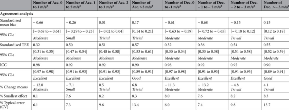 En el estudio "Integrating video tracking and GPS to quantify accelerations and decelerations…" con un club profesional se compararon los valores de aceleraciones y deceleraciones entre el sistema de vídeo (Mediacoach) y WIMU PRO.